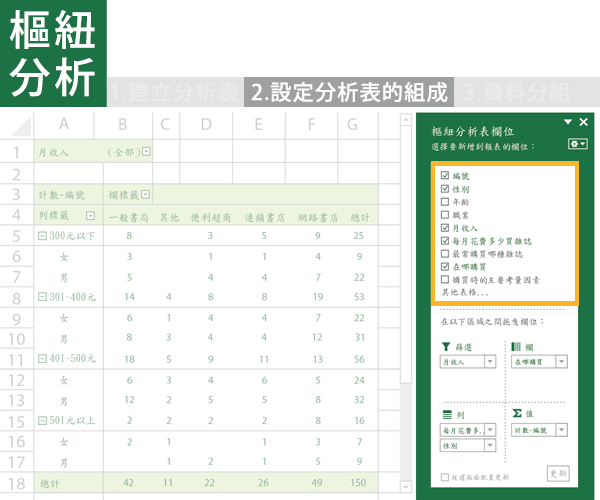 Step2. 調整樞紐分析表的組成,把想分析的欄位放進去